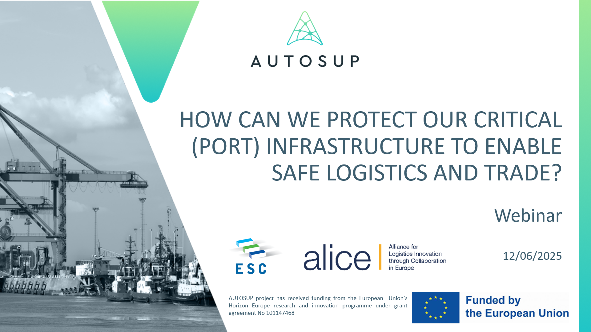 On 12 June 2025, AUTOSUPs project partners ESC and ALICE hosted a webinar on “How can we protect our critical (port)infrastructure to enable safe logistics and trade?”. During the webinar, we...